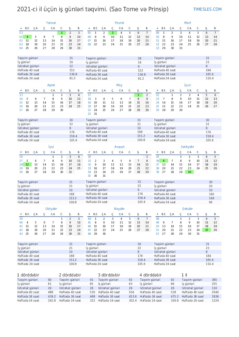 Sao Tome və Prinsip üçün 2-cü rüb təqvim 2021