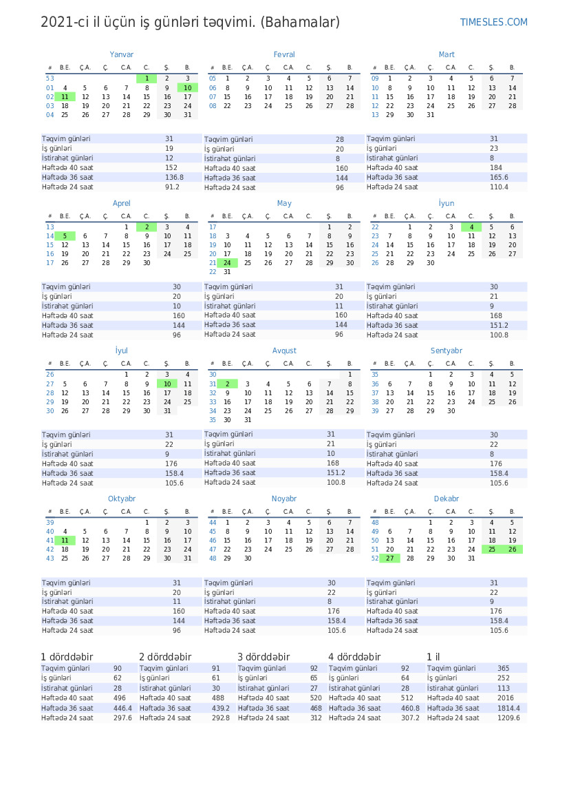 Bahamalar üçün 3-cü rüb təqvim 2021