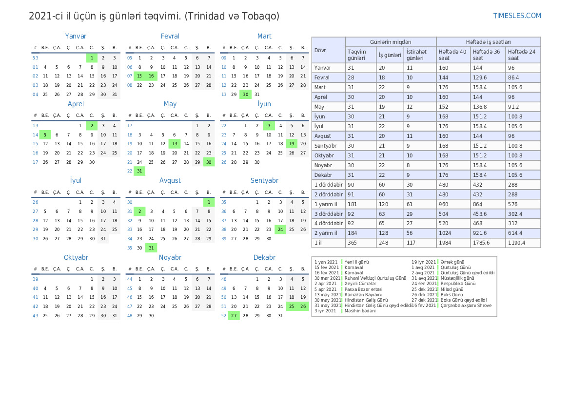 Trinidad və Tobaqo üçün 2021-ci ilin 4 rübü üçün tətil və həftə sonları ilə PDF iş günləri təqvimini yükləyin və çap edin