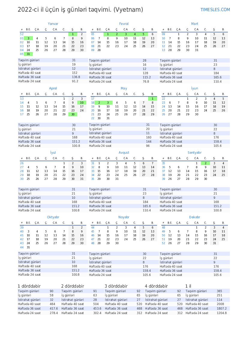 Vyetnam üçün 1-cü rüb təqvim 2022