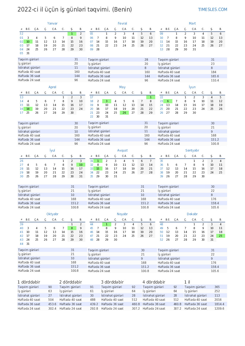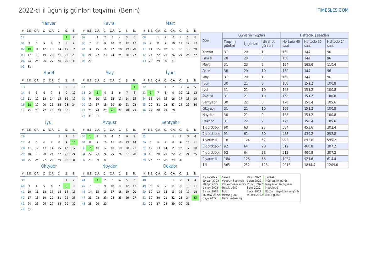 Benin üçün 2-cü rüb təqvim 2022