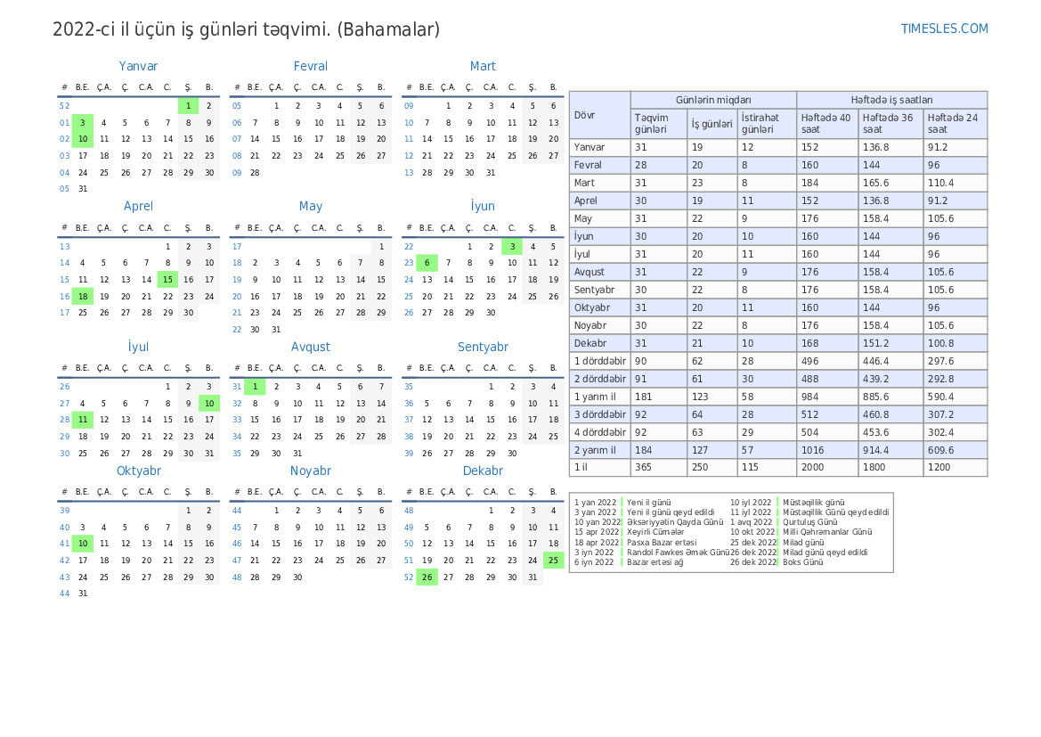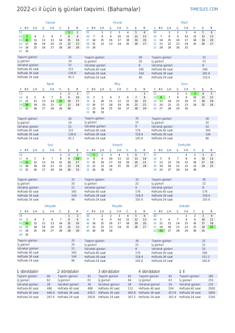Bahamalar üçün 3-cü rüb təqvim 2022
