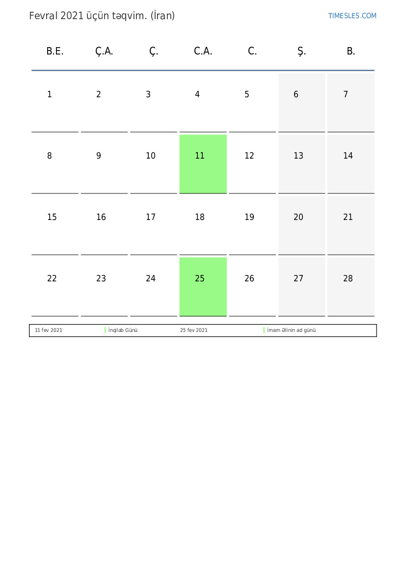 İran üçün Fevral 2021 üçün Tətillər və Həftə Sonları Təqvim