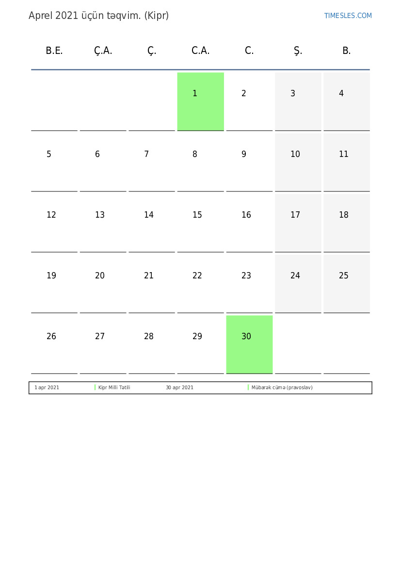 Kipr üçün Aprel 2021 üçün Tətillər və Həftə Sonları Təqvim