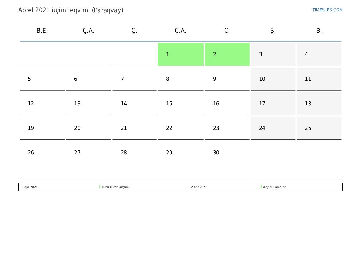 Paraqvay üçün Aprel 2021 təqvimi