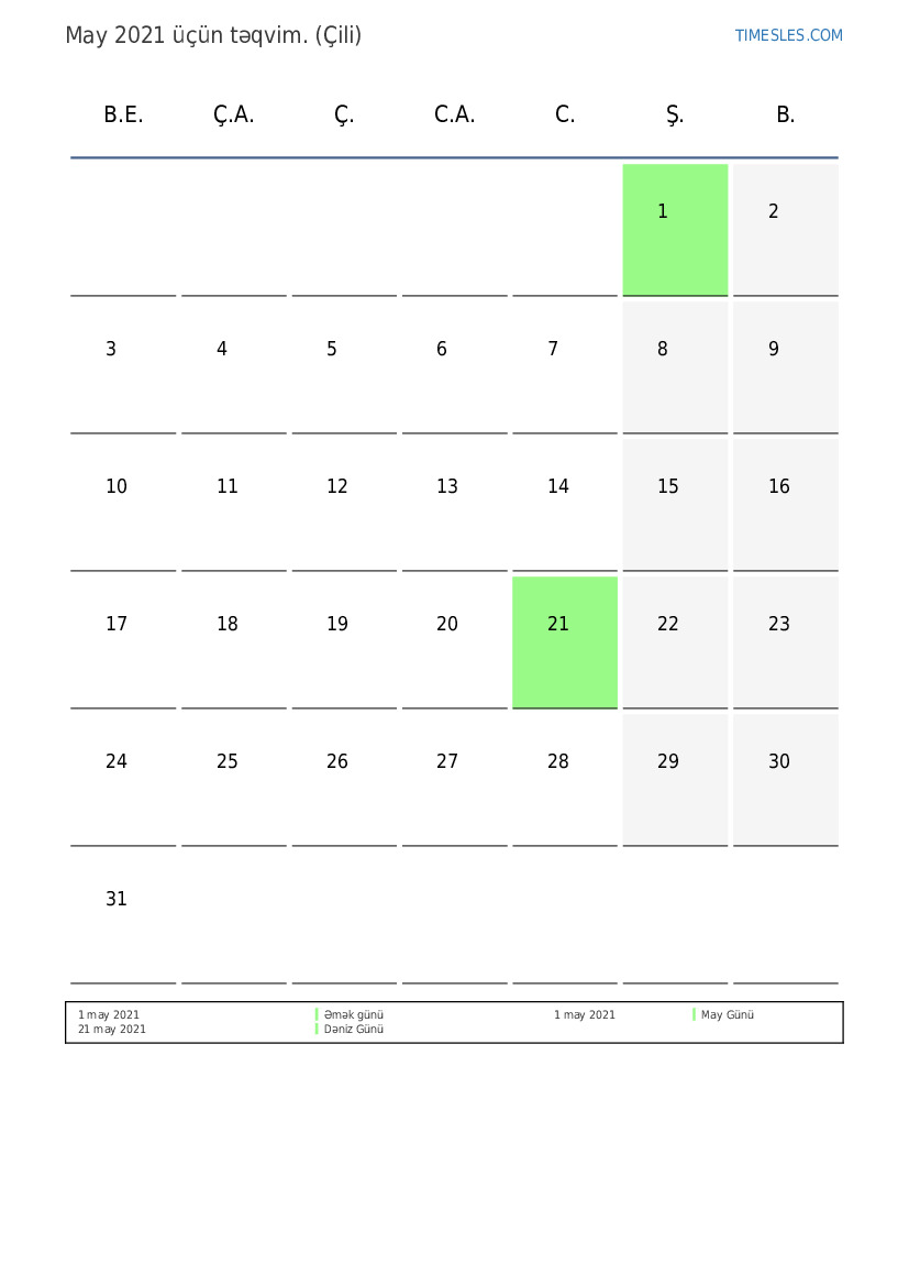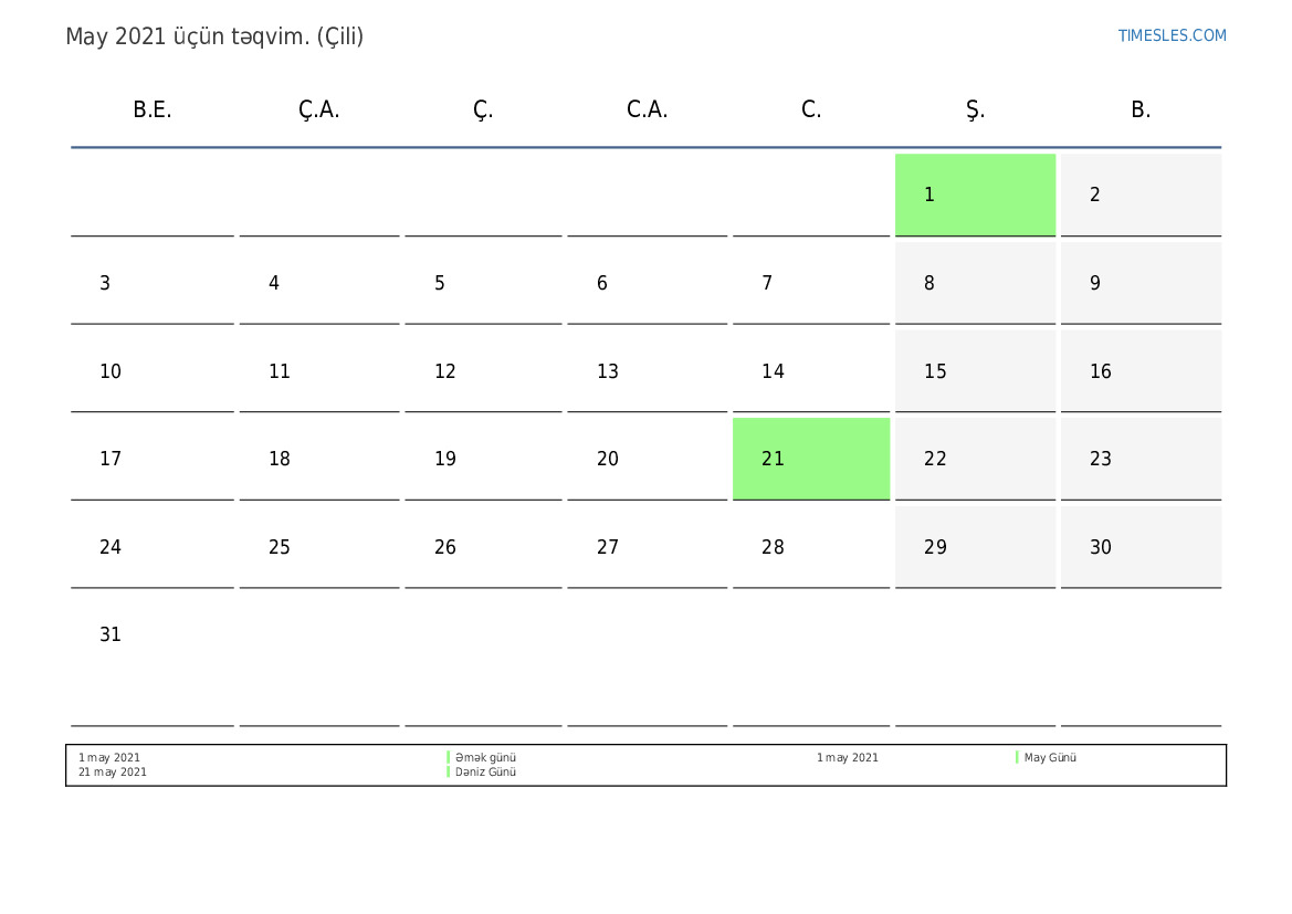 Çili üçün May 2021 təqvimi
