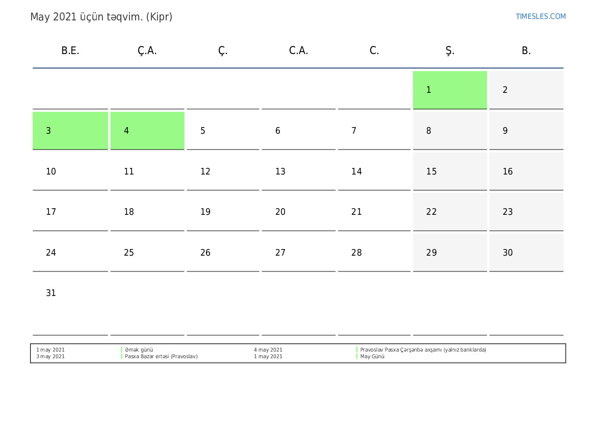 Kipr üçün May 2021 üçün Tətillər və Həftə Sonları Təqvim
