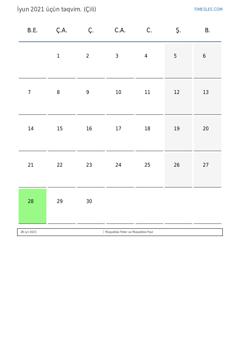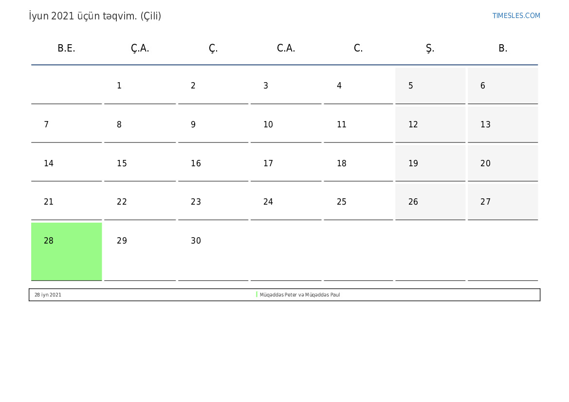 Çili üçün İyun 2021 üçün tətil və həftə sonları ilə PDF təqvimini yükləyin və çap edin
