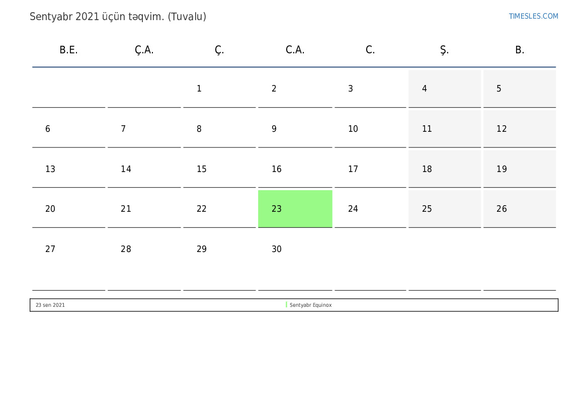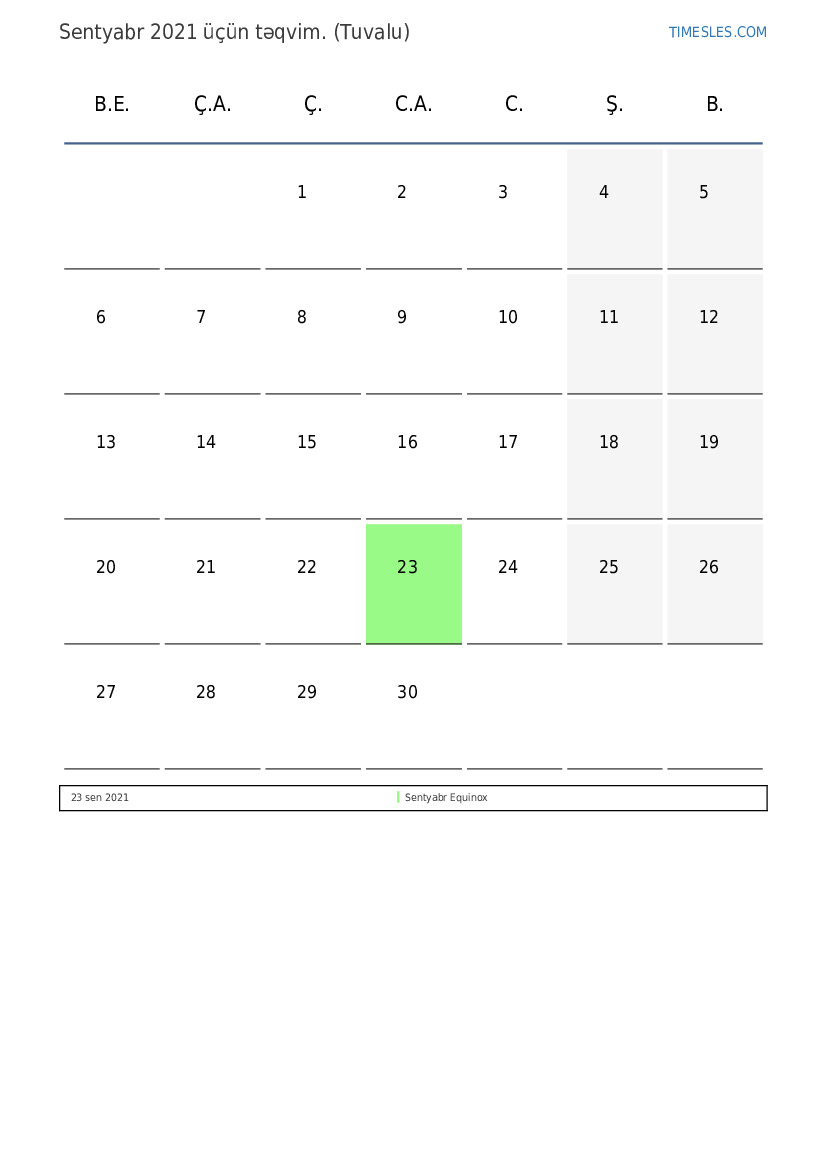 Tuvalu üçün Sentyabr 2021 təqvimi