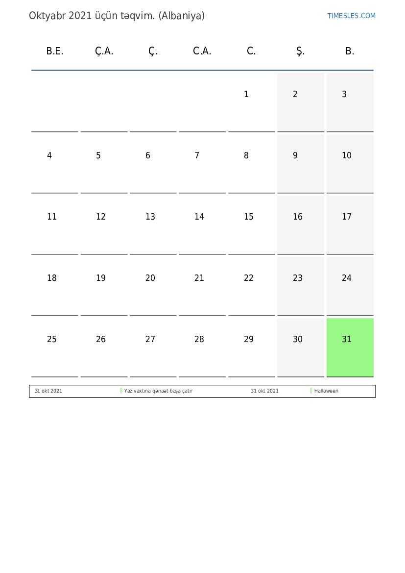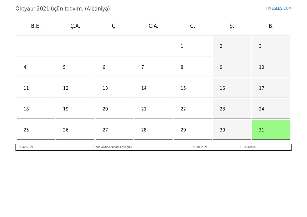 Albaniya üçün Oktyabr 2021 təqvimi