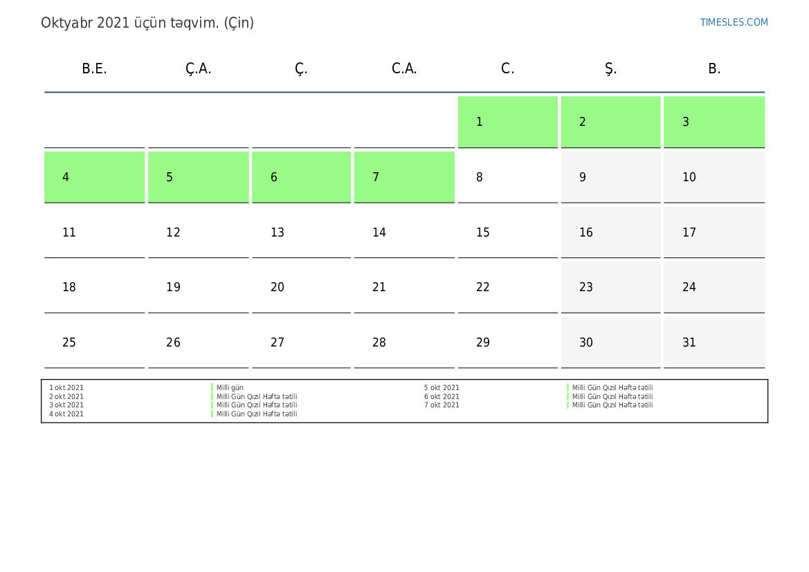 5 okt 2021 Milli Gün Qızıl Həftə tətili