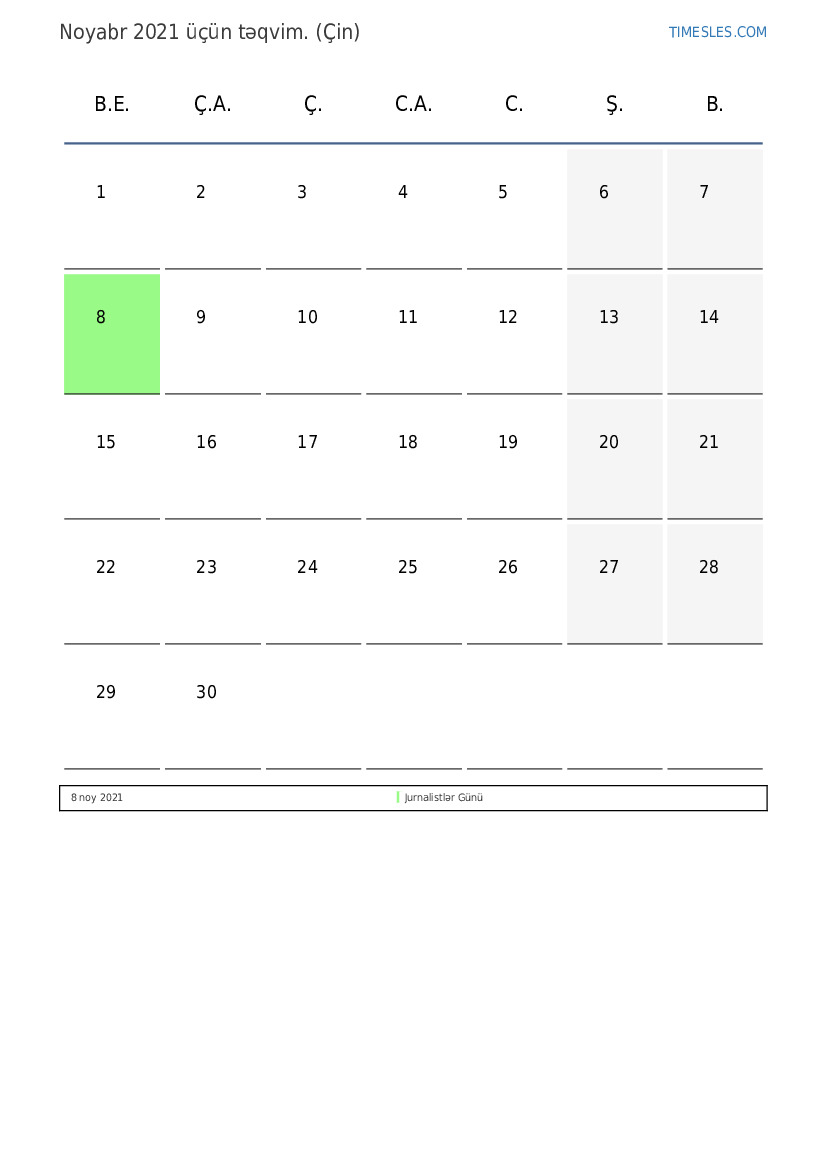 Çin üçün Noyabr 2021 təqvimi