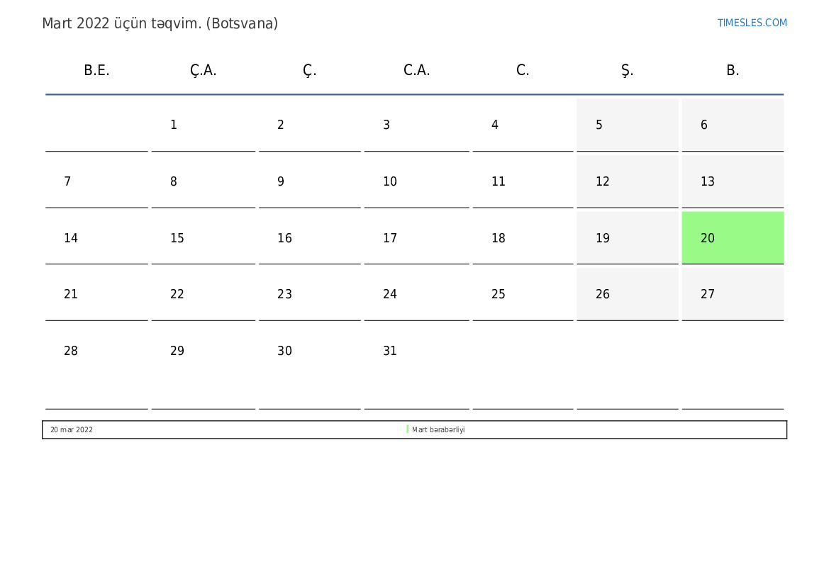 20 mar 2022 Mart bərabərliyi