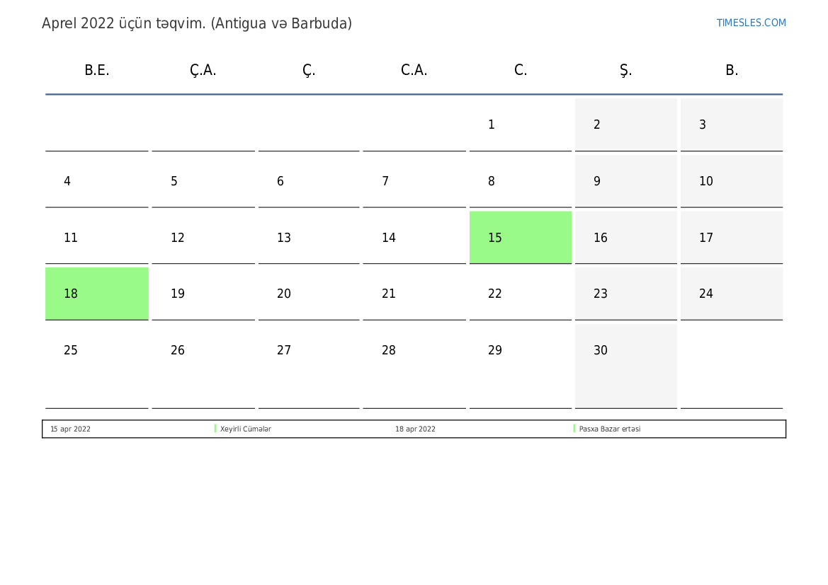Antigua və Barbuda üçün Aprel 2022 təqvimi