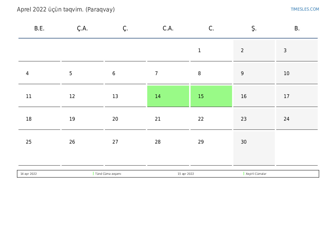 Paraqvay üçün Aprel 2022 üçün Tətillər və Həftə Sonları Təqvim