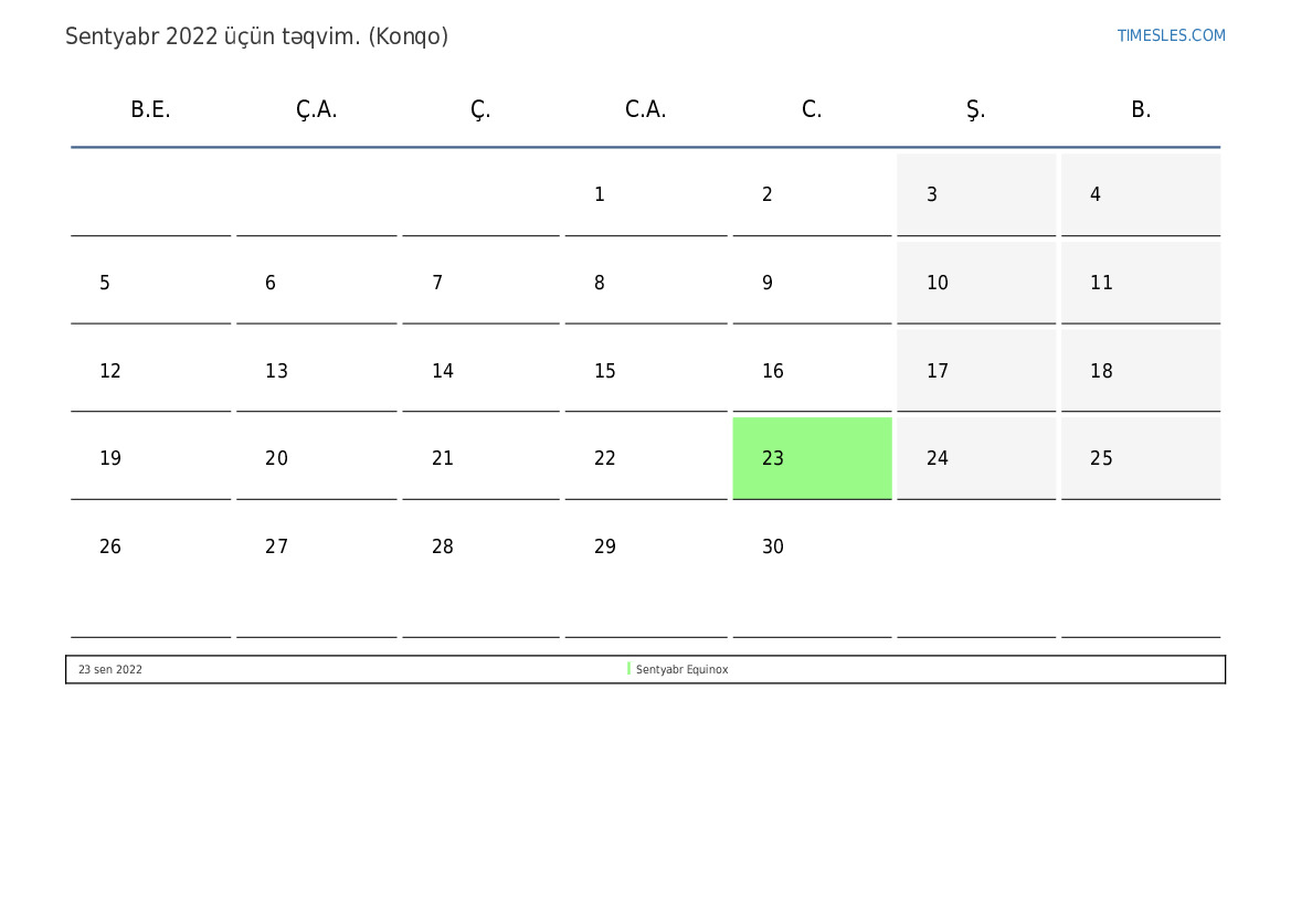 Konqo üçün Sentyabr 2022 təqvimi