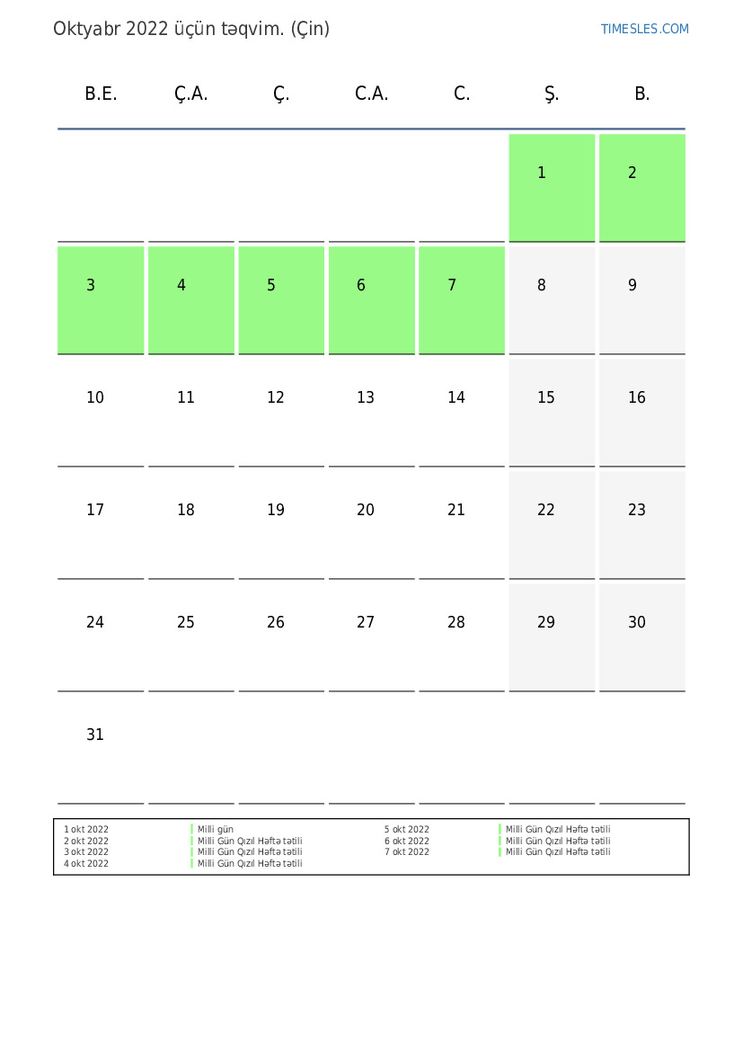 2 okt 2022 Milli Gün Qızıl Həftə tətili