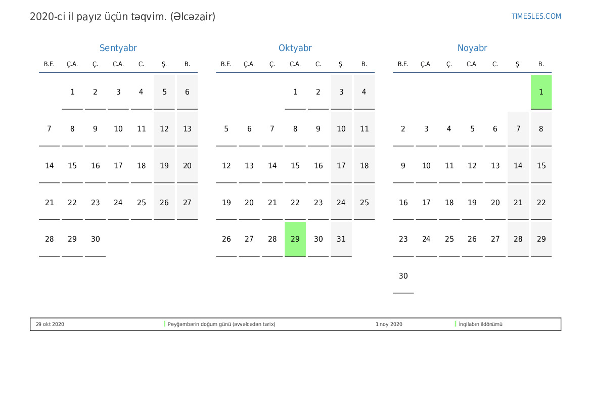 29 okt 2020 Peyğəmbərin doğum günü (əvvəlcədən tarix)