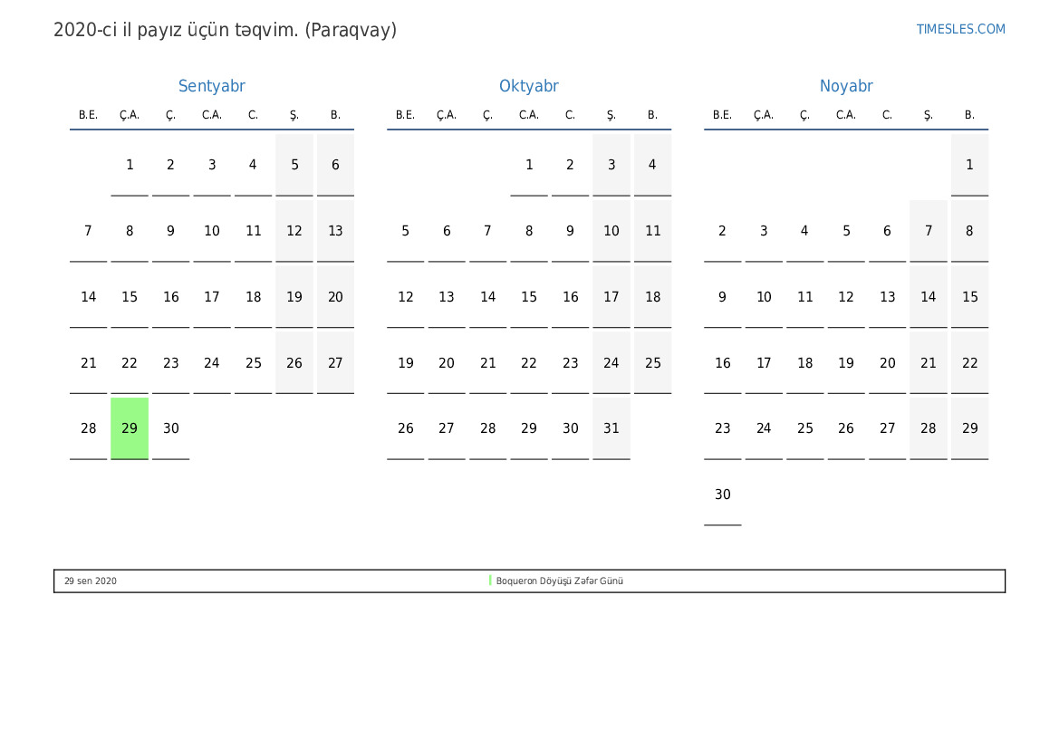 Paraqvay üçün 2020-ci il payız üçün təqvim