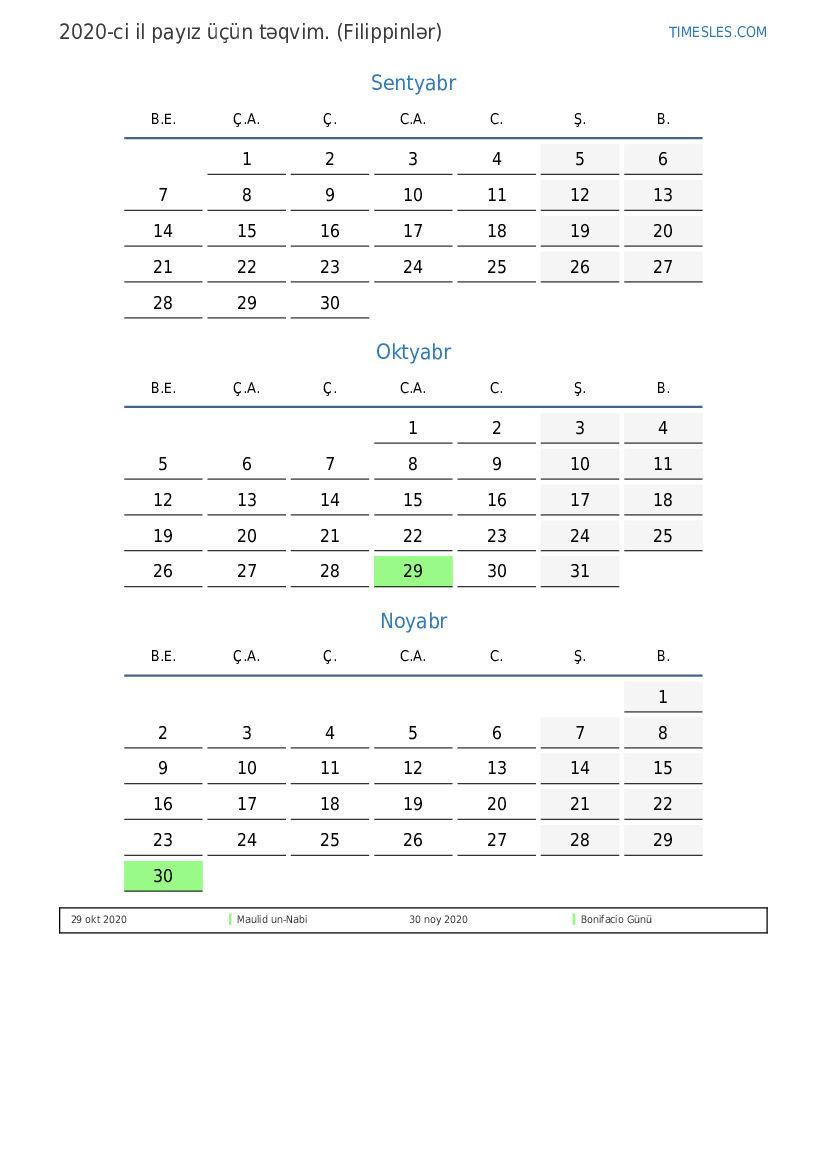 2 noy 2020 Əlavə Xüsusi Qeyri-İş Günü