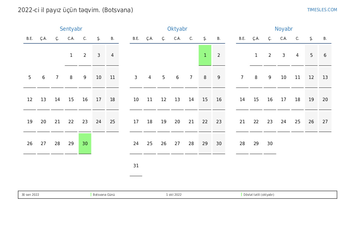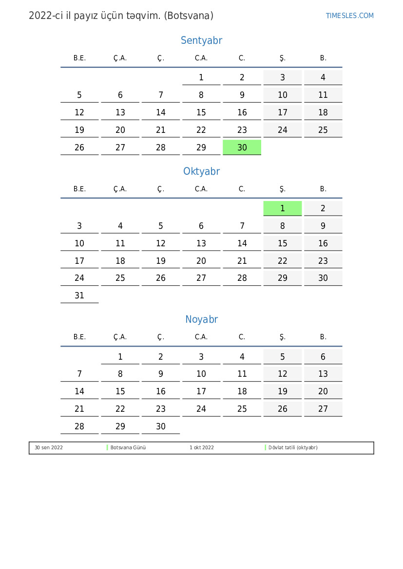 Botsvana üçün 2022-ci il payız üçün təqvim