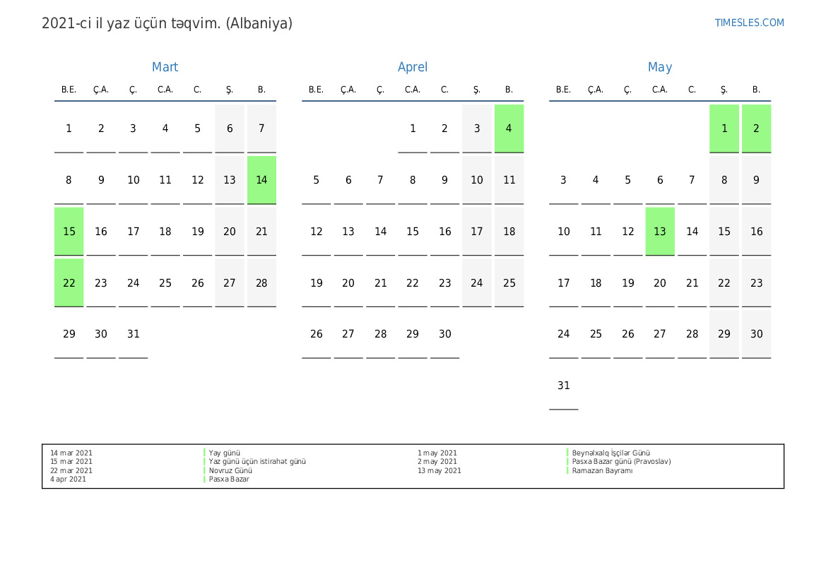 15 mar 2021 Yaz günü üçün istirahət günü
