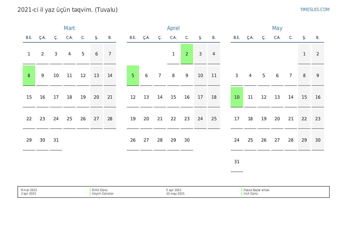 Tuvalu üçün 2021-ci il yaz üçün təqvim
