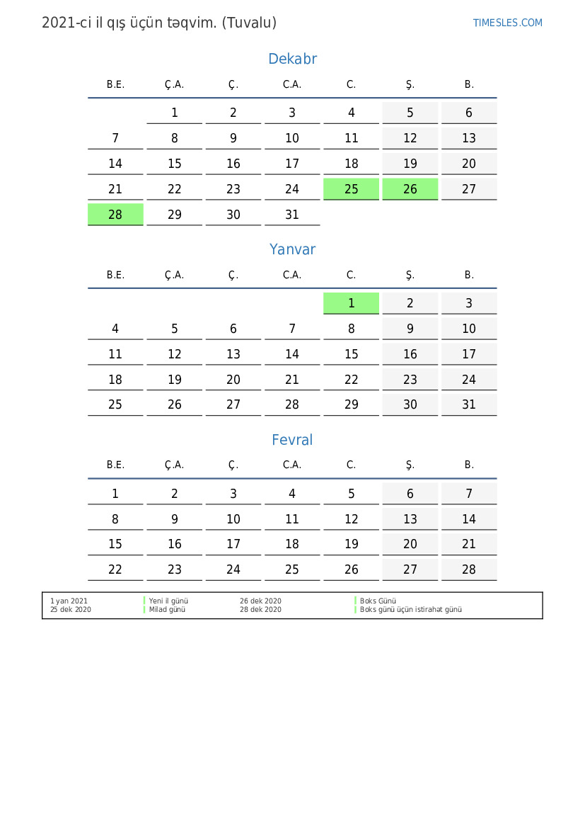 Tətillər olmadan mənzərə təqvimi