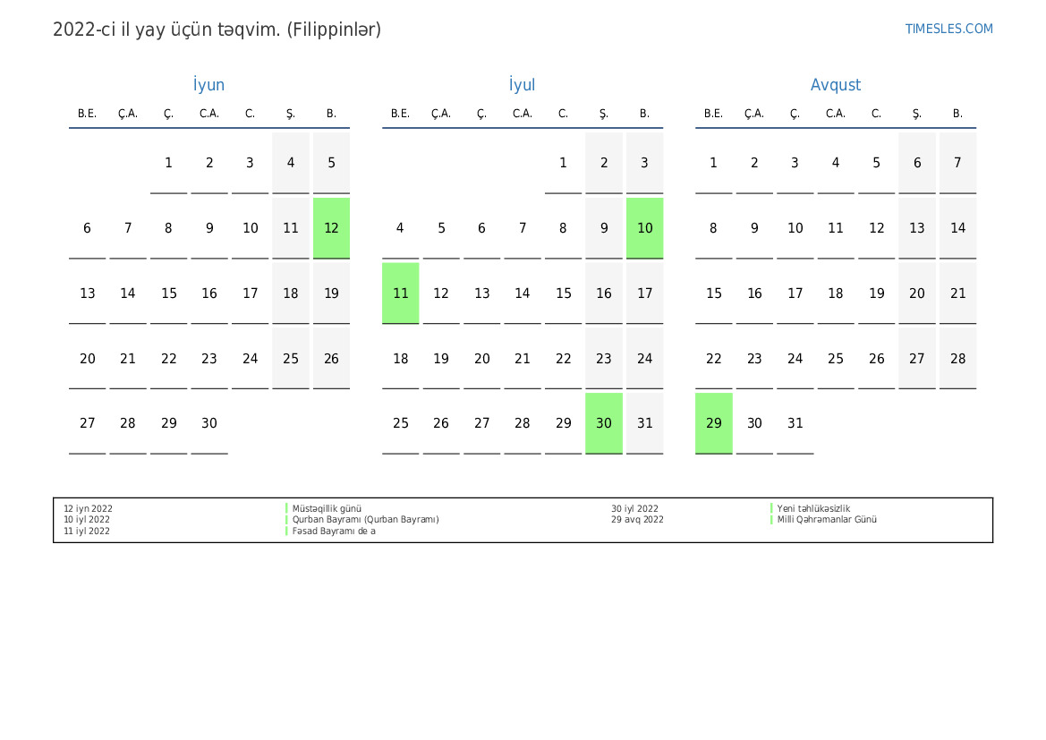 Filippinlər üçün 2022-ci ilin yay üçün tətil və həftə sonları ilə PDF təqvimini yükləyin və çap edin