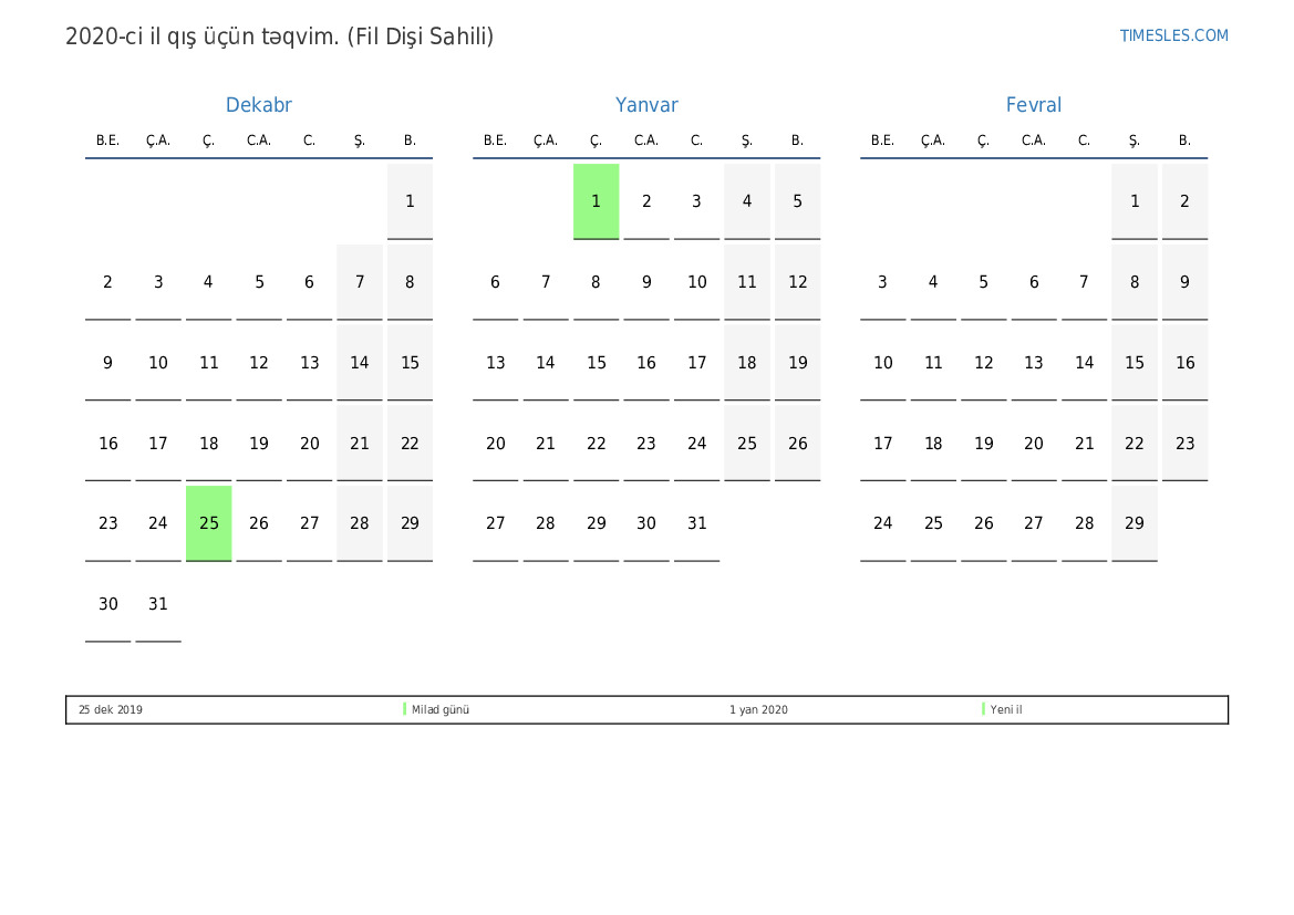 Fil Dişi Sahili üçün 2020-ci il qış üçün təqvim