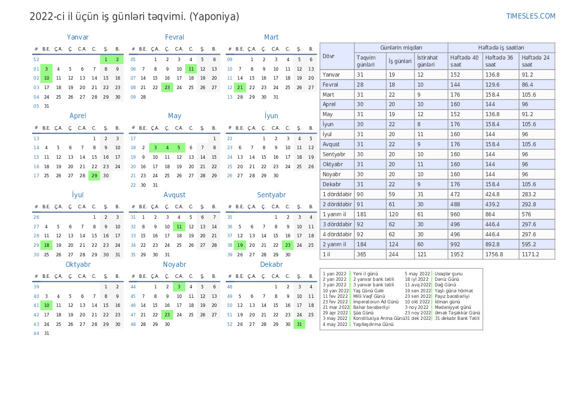 Yaponiya üçün İyun 2022 üçün iş günləri təqvimi