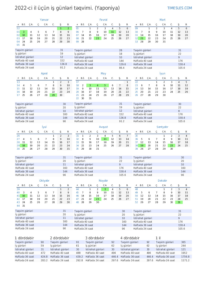 2022-ci ilin İyun ayı üçün iş günləri. Yaponiyada 2022-ci il İyun ayı üçün 1 tətil və istirahət günü var.