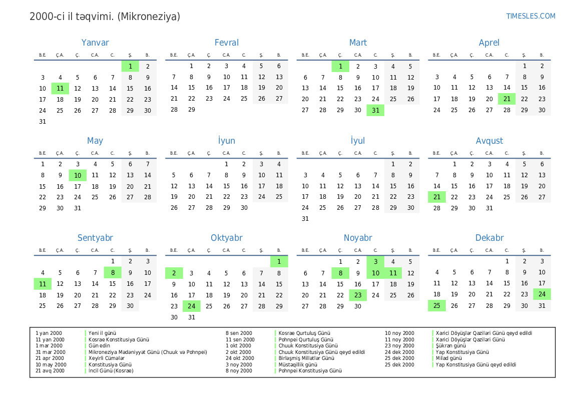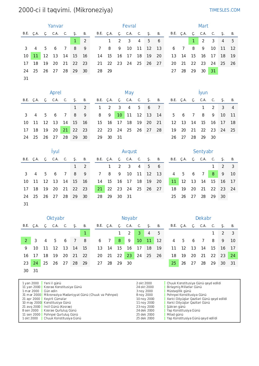 31 mar 2000 Mikroneziya Mədəniyyət Günü (Chuuk və Pohnpei)