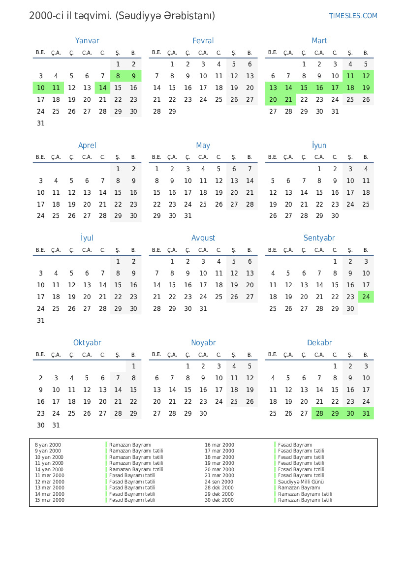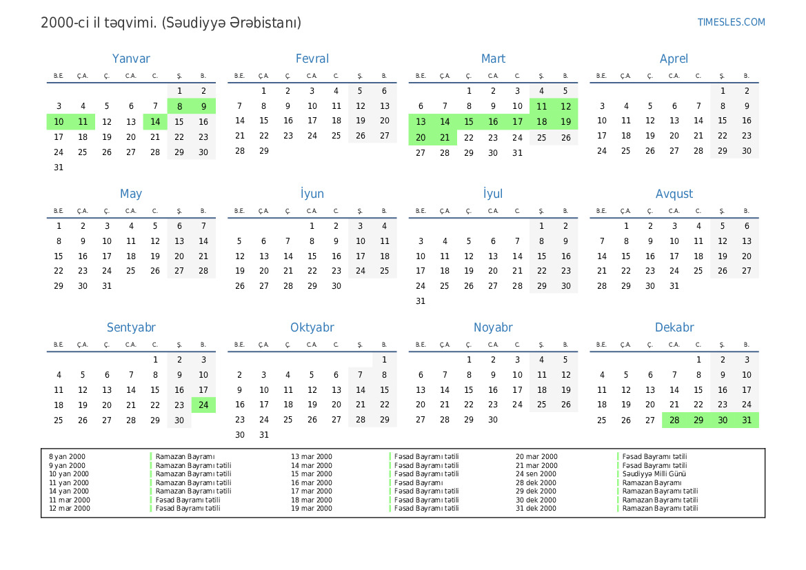 13 yan 2000 Fitr bayramı tətili (yalnız dövlət sektorunda)