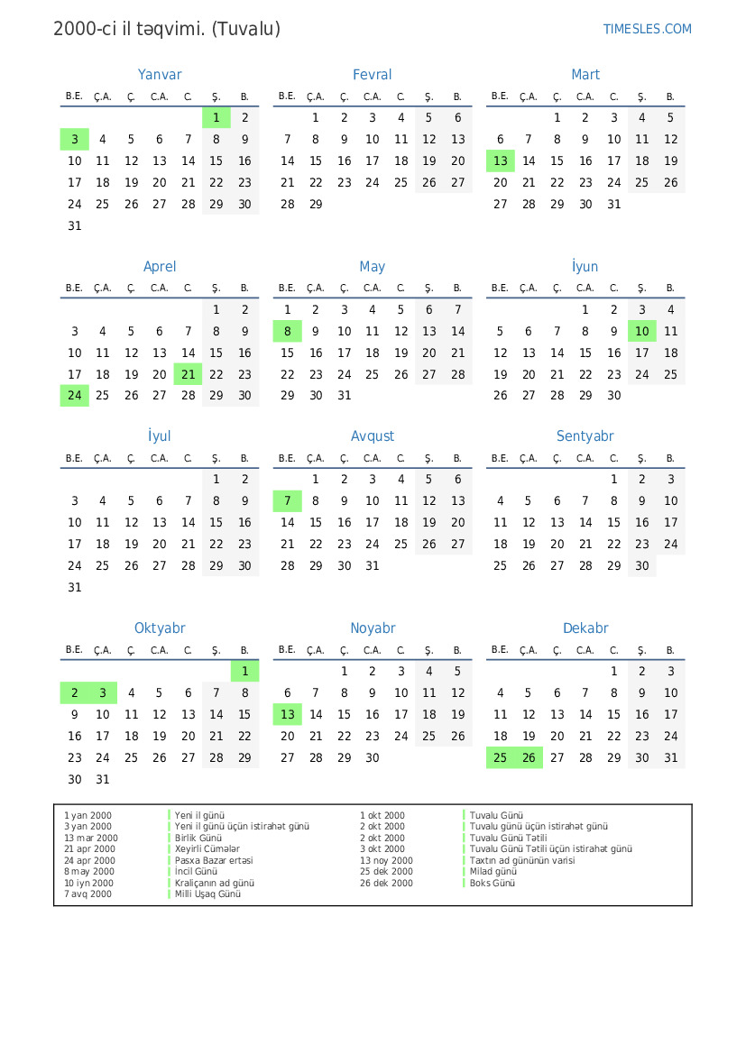 2 okt 2000 Tuvalu Günü Tətili