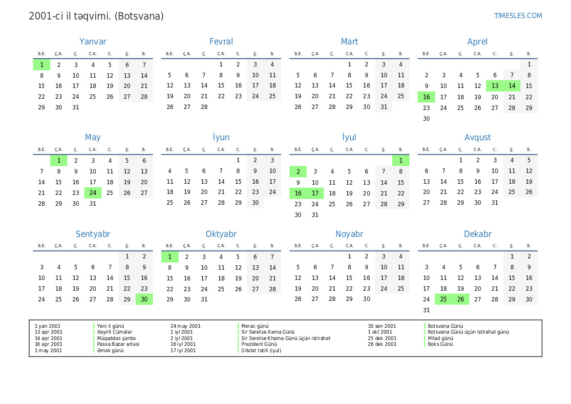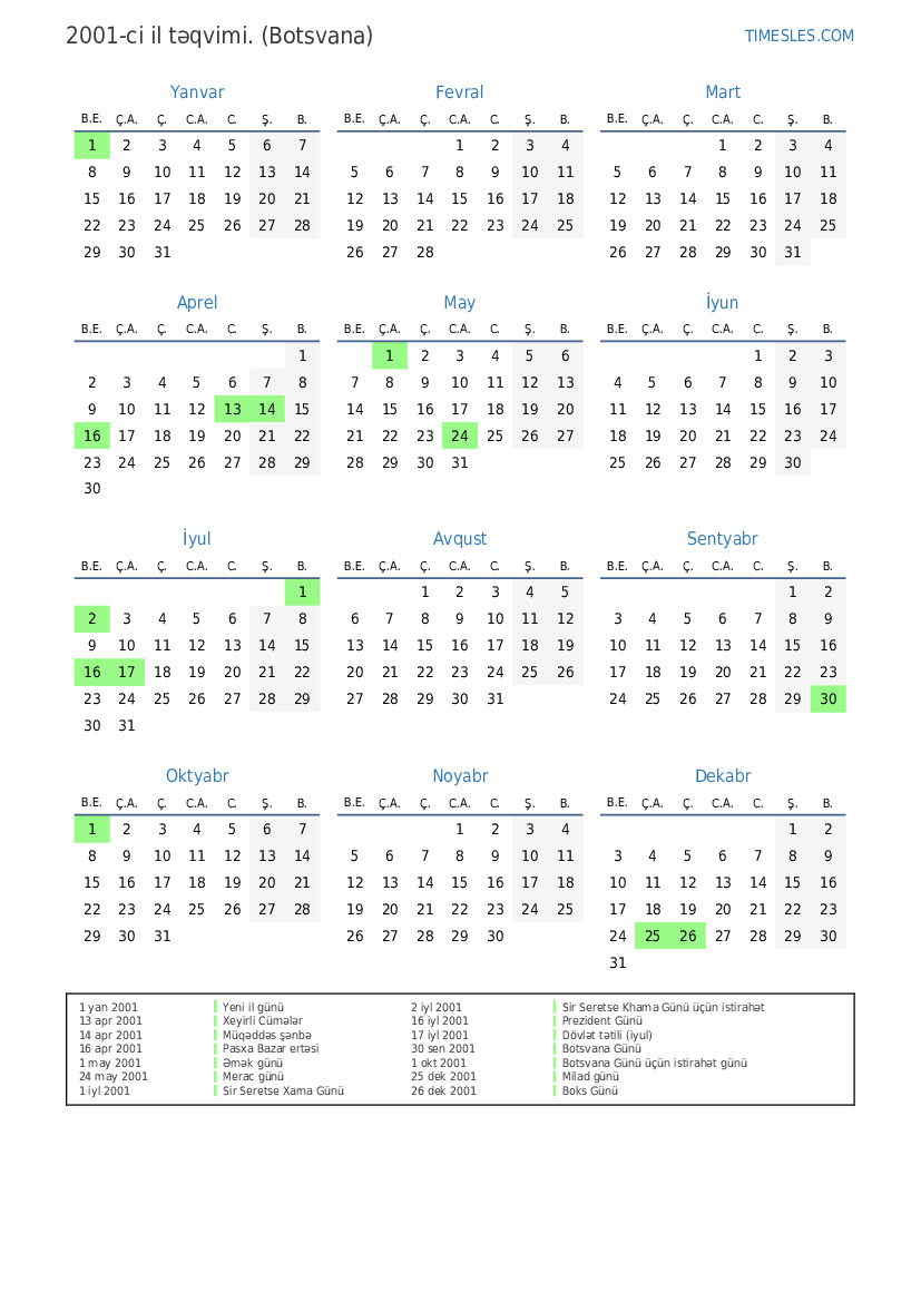 1 okt 2001 Botsvana Günü üçün istirahət günü