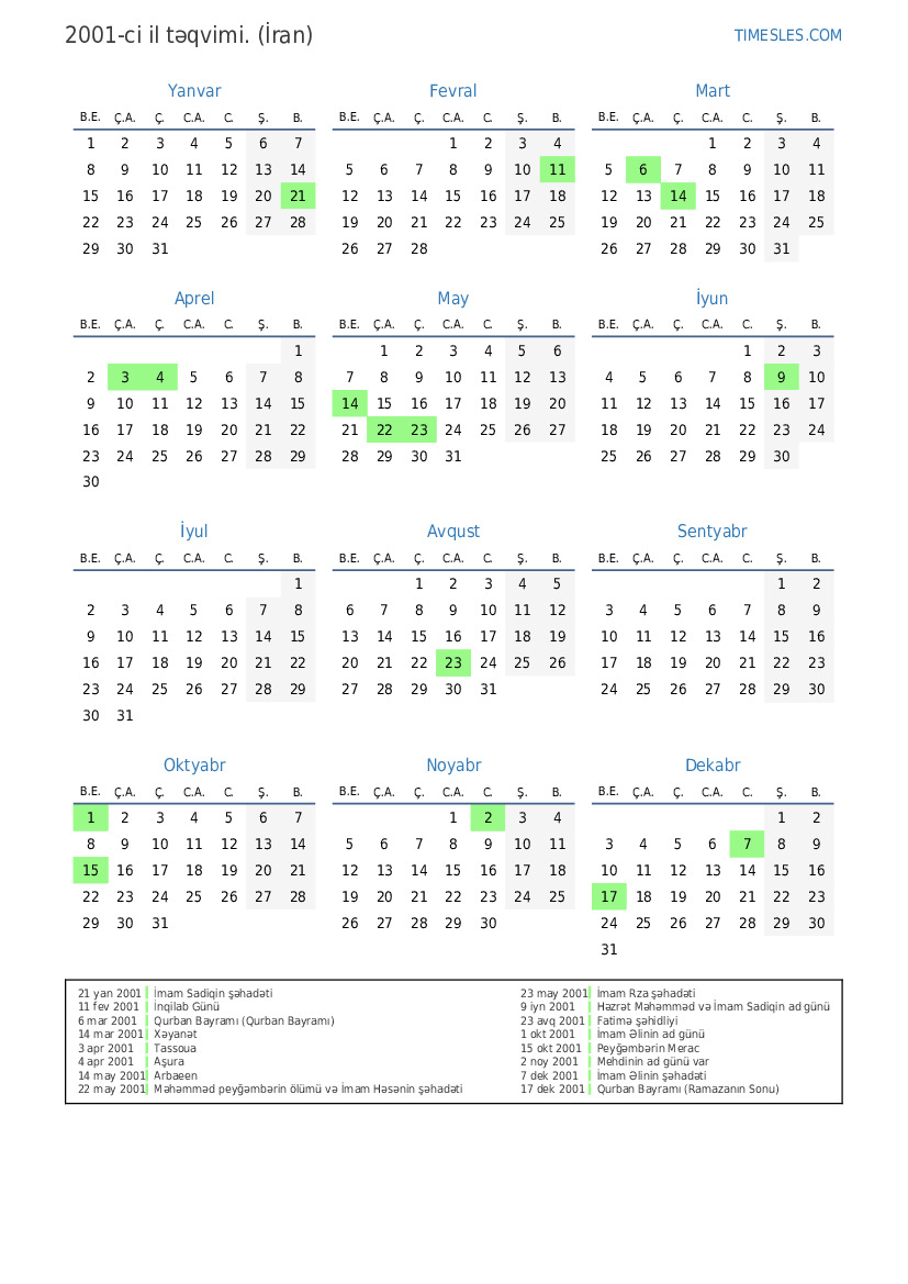 9 iyn 2001 Həzrət Məhəmməd və İmam Sadiqin ad günü