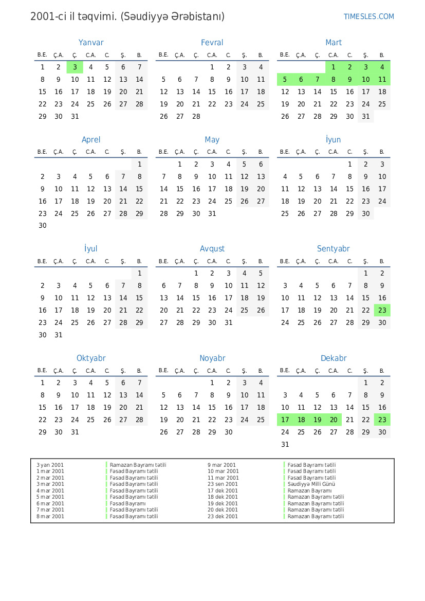 1 yan 2001 Fitr bayramı tətili (yalnız dövlət sektorunda)