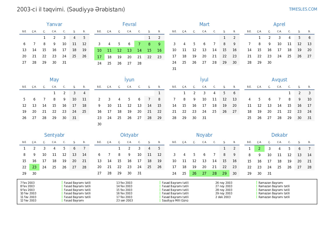 30 noy 2003 Fitr bayramı tətili (yalnız dövlət sektorunda)