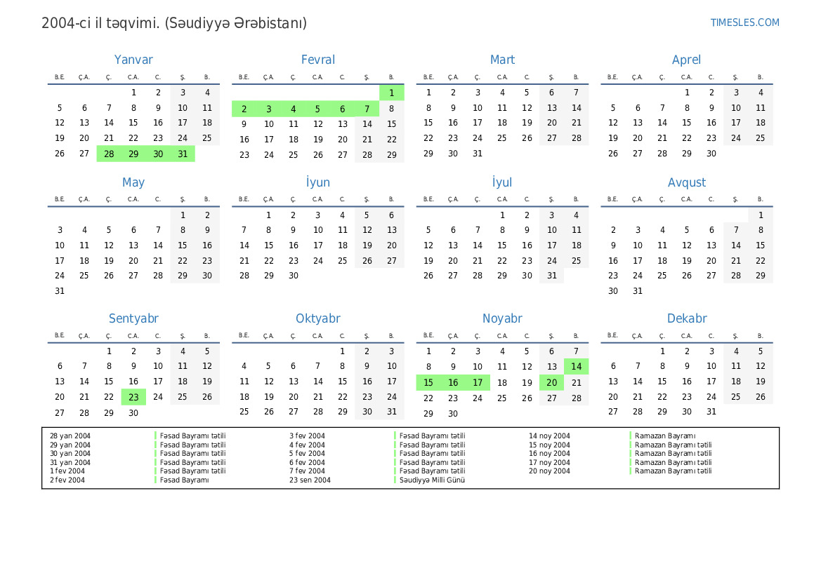 19 noy 2004 Fitr bayramı tətili (yalnız dövlət sektorunda)