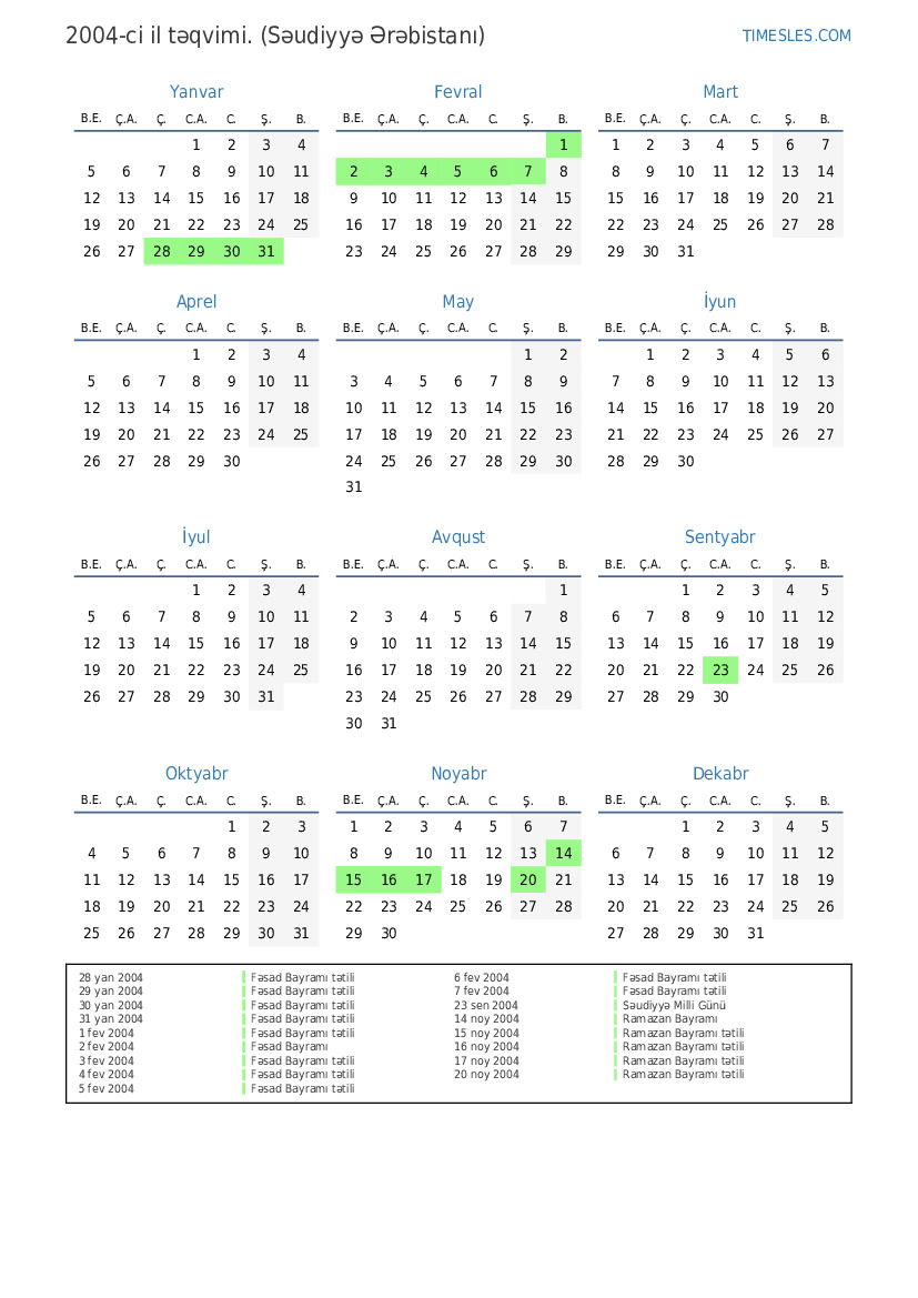 18 noy 2004 Fitr bayramı tətili (yalnız dövlət sektorunda)
