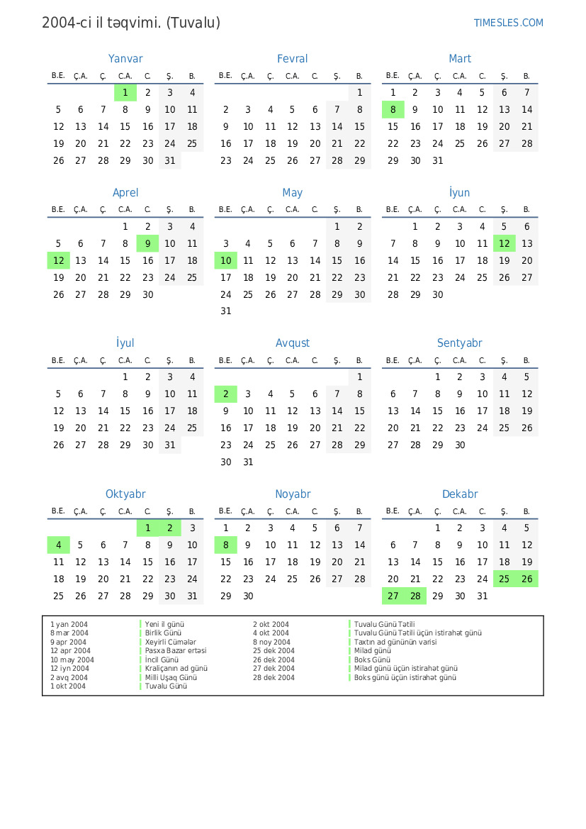4 okt 2004 Tuvalu Günü Tətili üçün istirahət günü