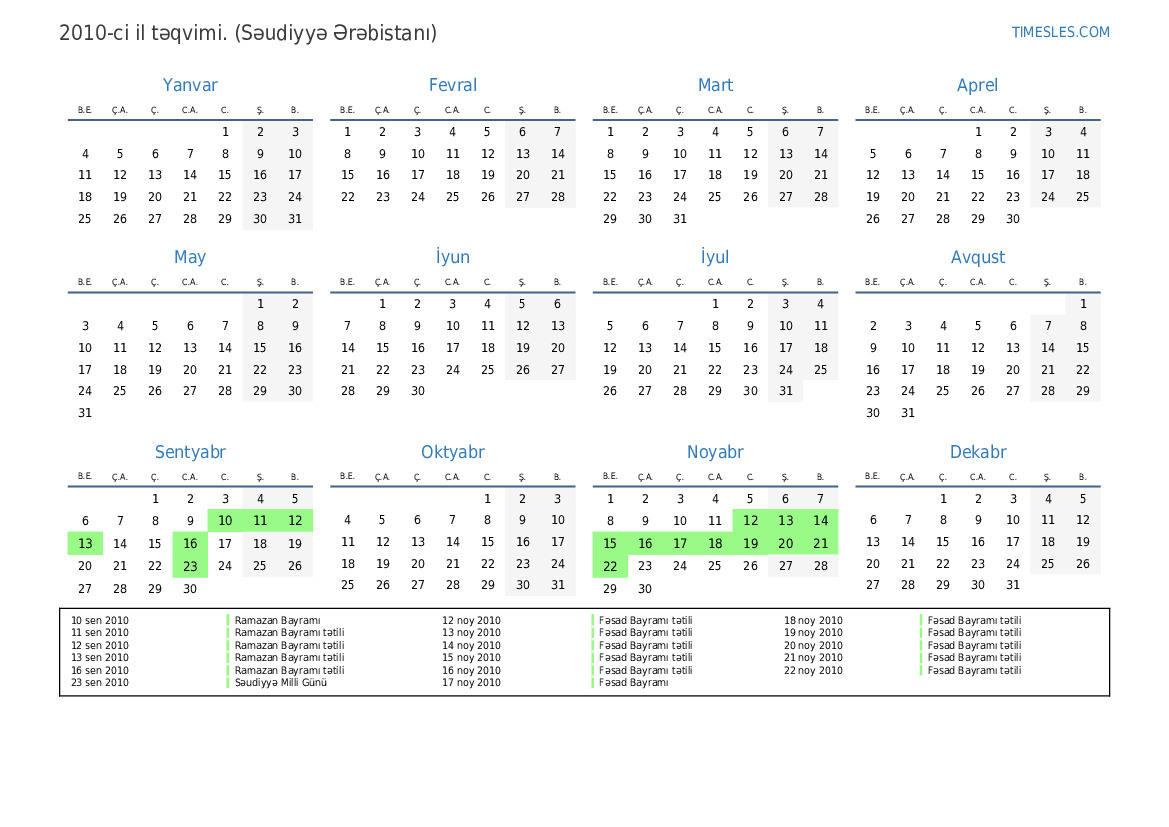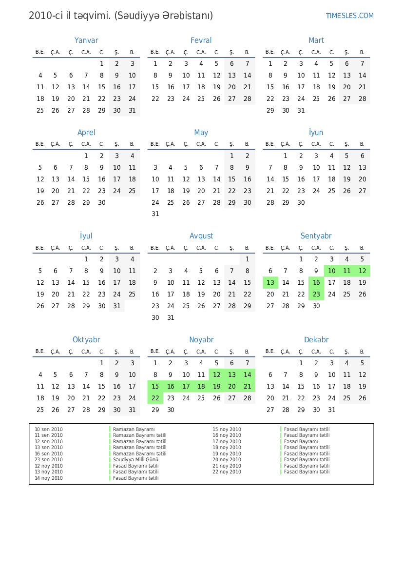 14 sen 2010 Fitr bayramı tətili (yalnız dövlət sektorunda)