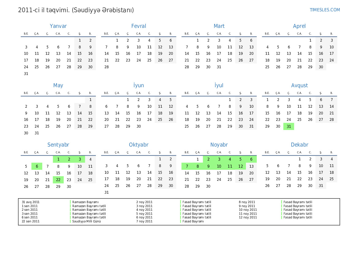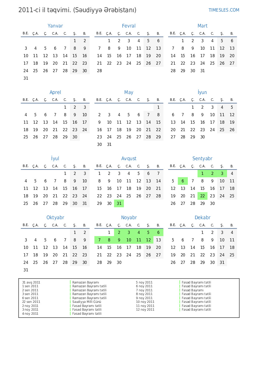 11 noy 2011 Fəsad Bayramı tətili