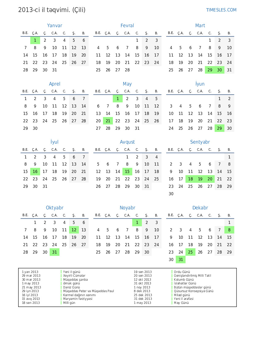 20 sen 2013 Genişləndirilmiş Milli Tətil