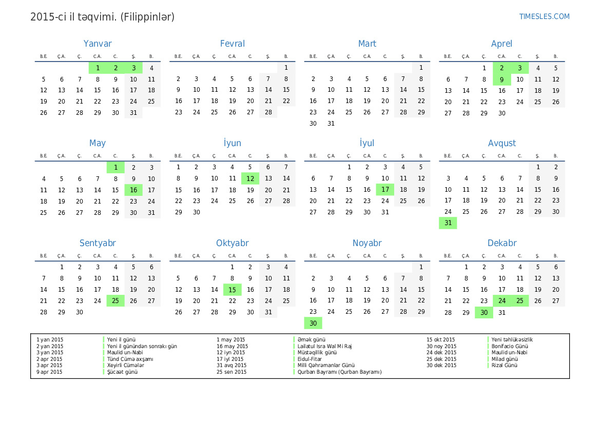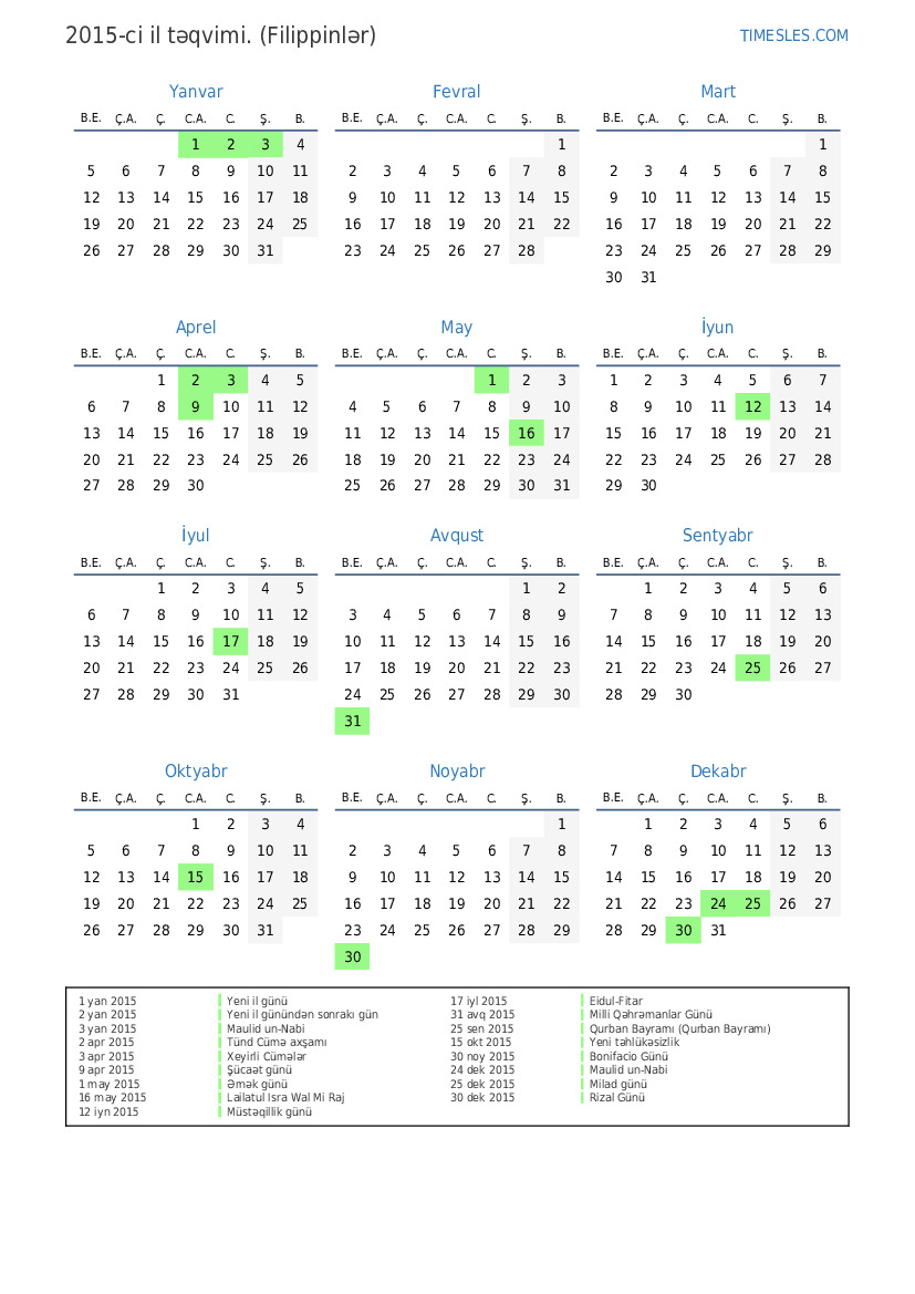 20 noy 2015 APEC Zirvəsi Əlavə Tətil