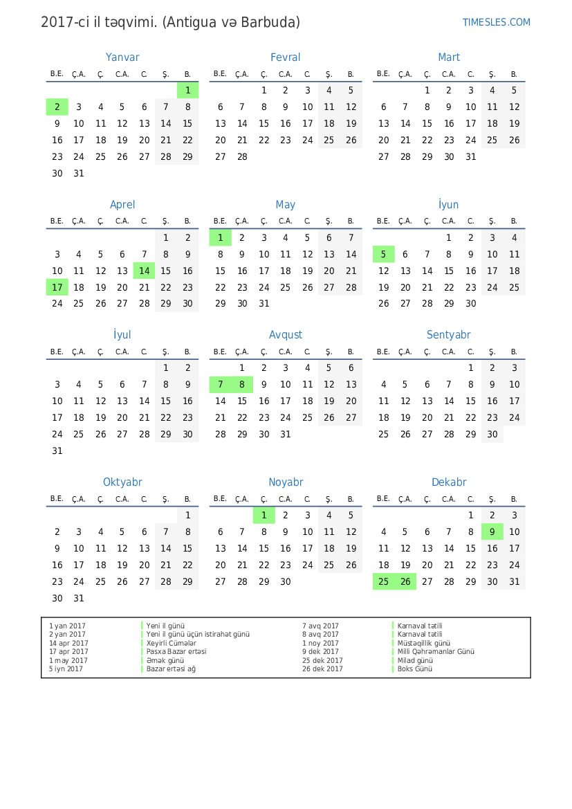 2 yan 2017 Yeni il günü üçün istirahət günü