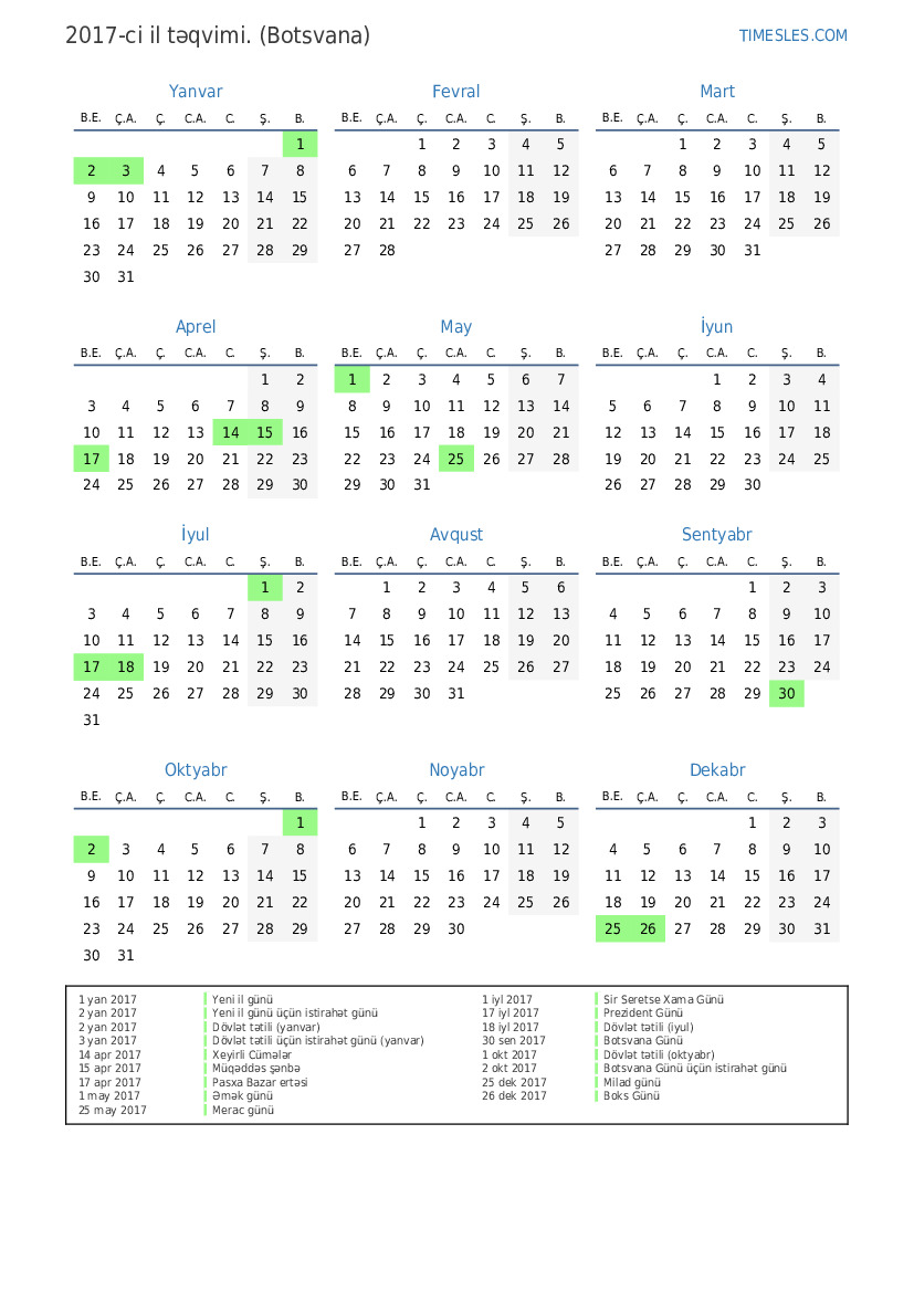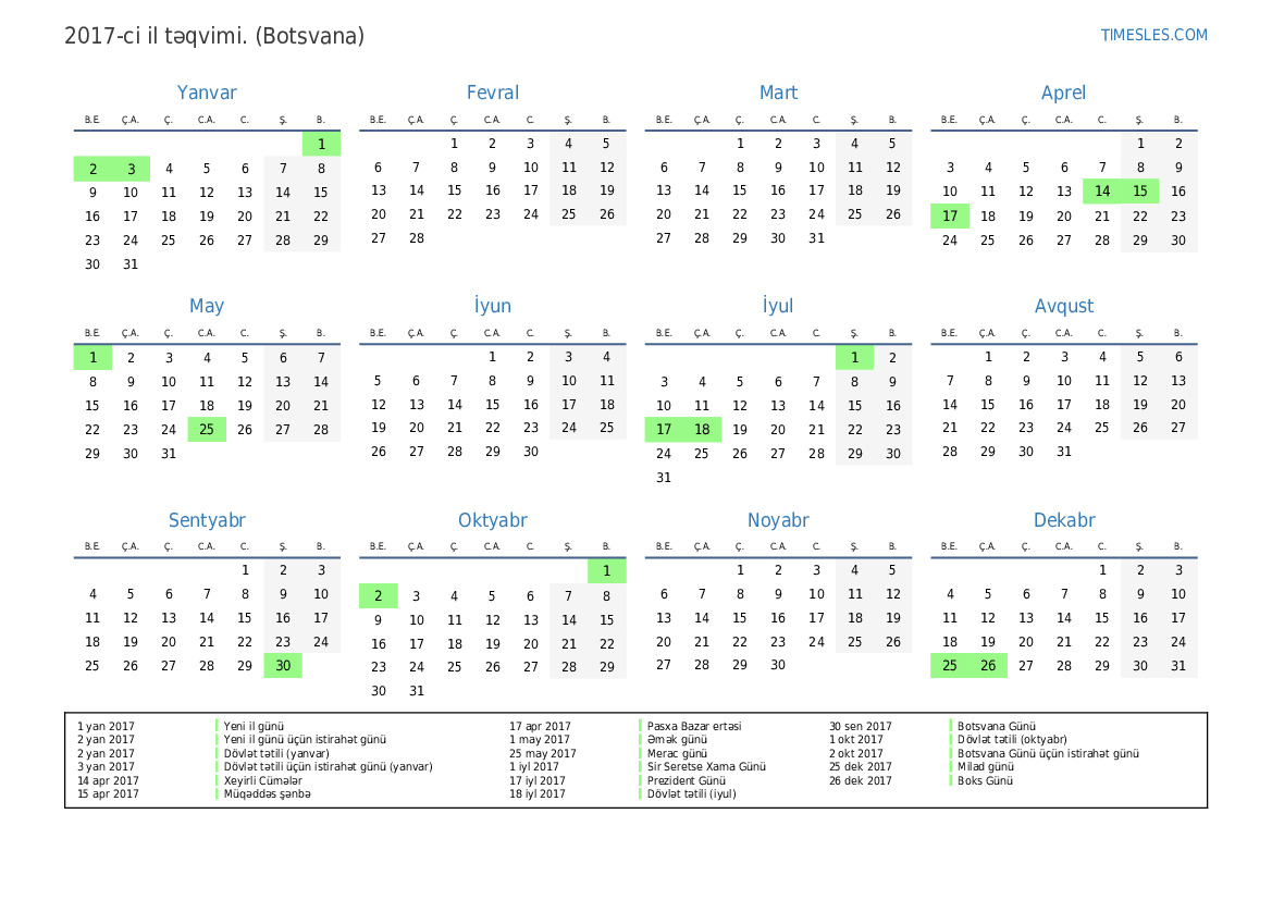 2 okt 2017 Botsvana Günü üçün istirahət günü