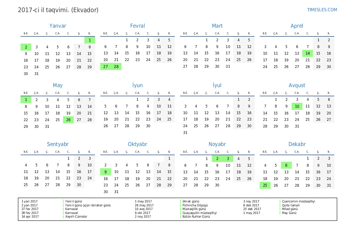 2 yan 2017 Yeni il günü üçün istirahət günü