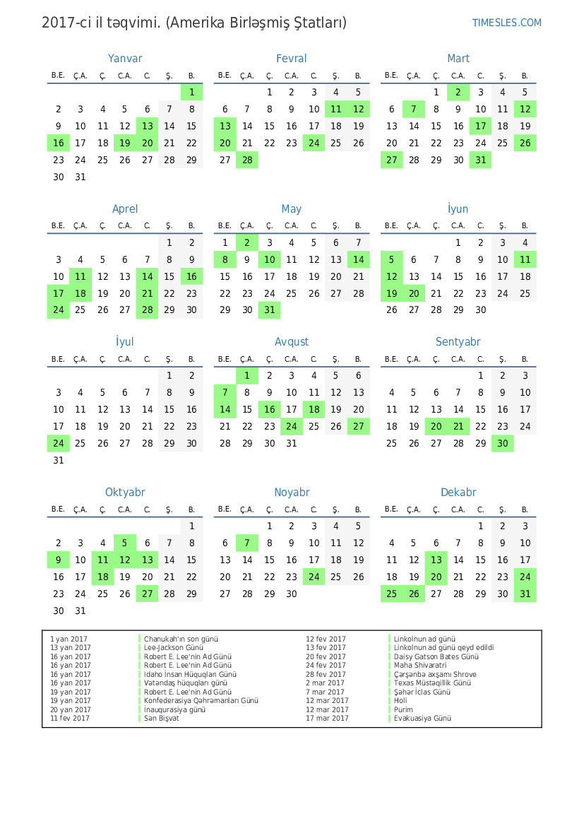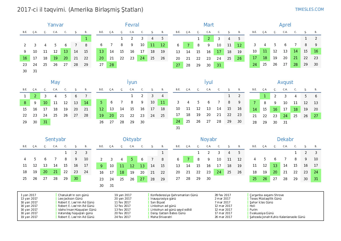 2 yan 2017 Yeni il günü üçün istirahət günü